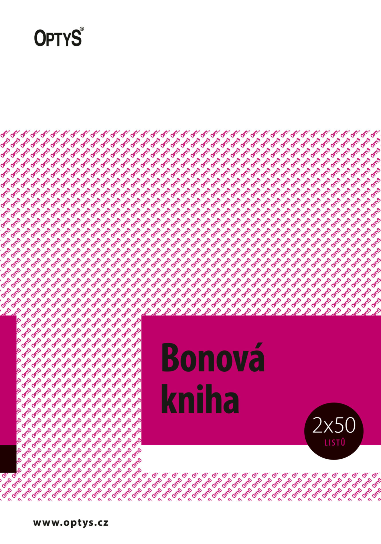 Optys sešit formátu A4, lepený v hraně. 100 listů. Každý list obsahuje 20 perforací oddělených, číslovaných, bonových bloků. Tisk jednostranný, černý. Papír xerox bílý, gramáž 80g/m2.