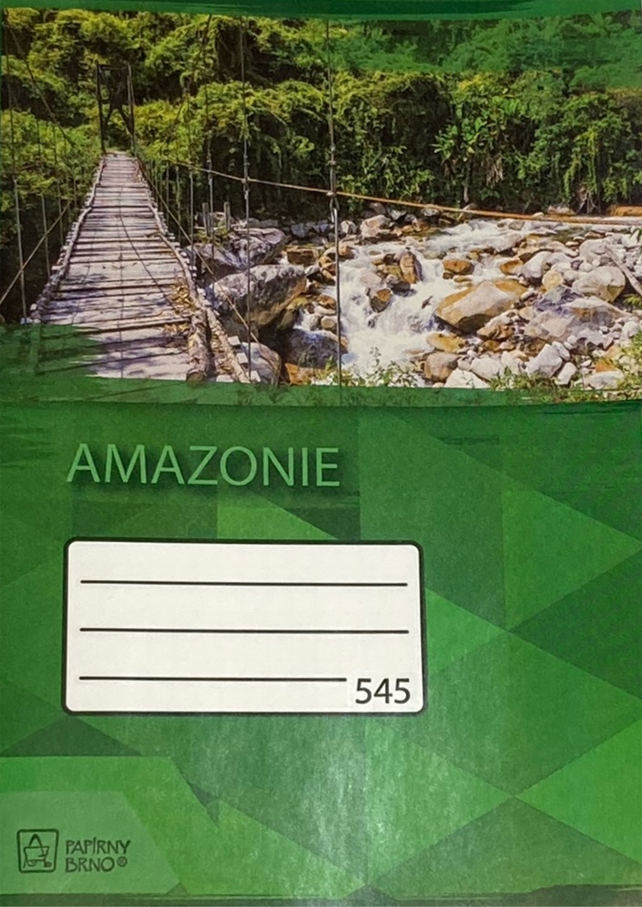 Sešit 545, čtverečkovaný, („školní“) formátu A5, šitý v hraně. 40 listů. Papír sešitu – bílý, gramáž 70g/m2. Desky sešitu – potištěný lesklý papír.